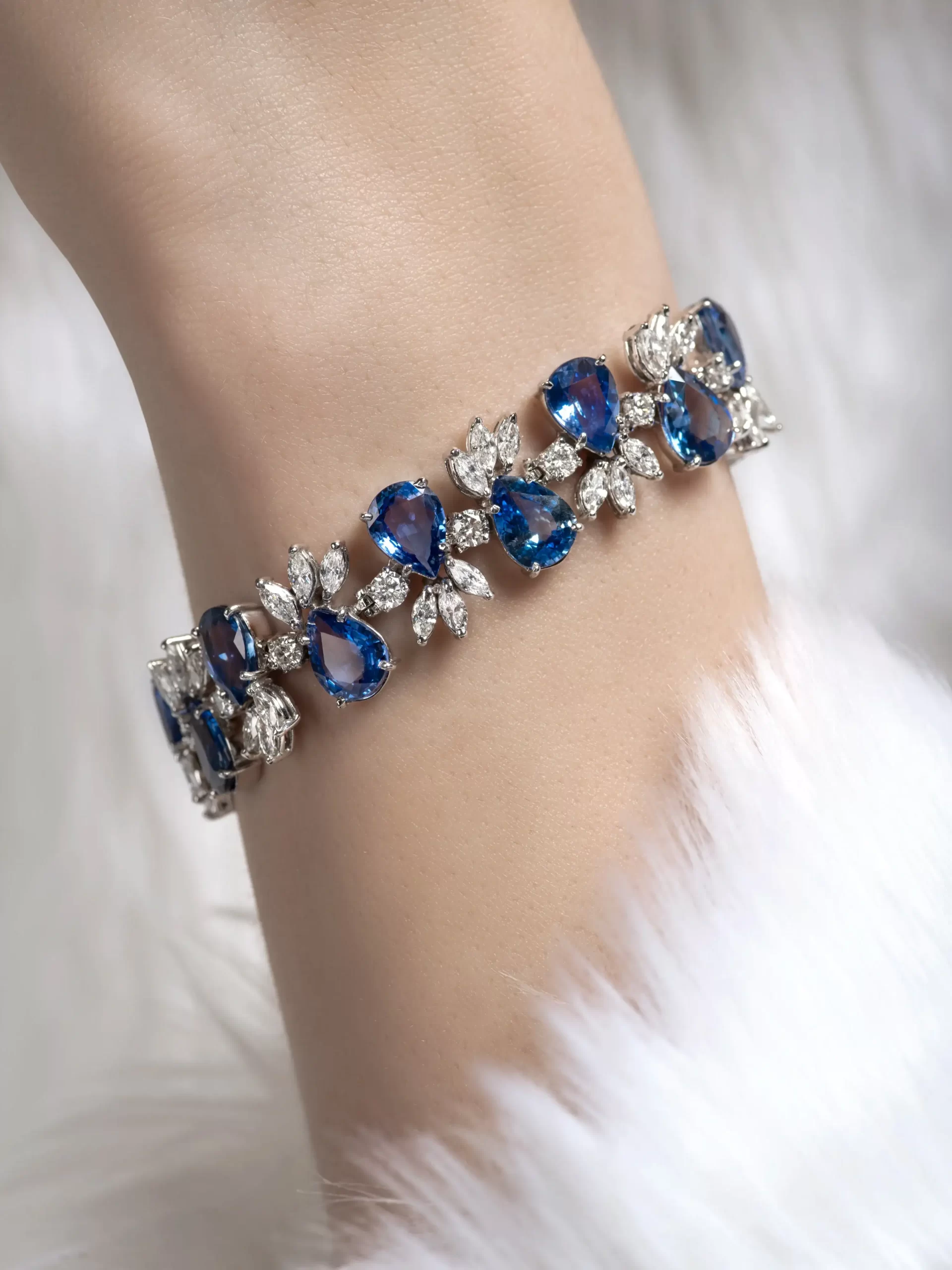 Bracelet Only perfect shaped diamonds can display a fabulous design The immaculate design of this truly gorgeous bracelet highlights the alluring beauty of the pear-shaped sapphires.